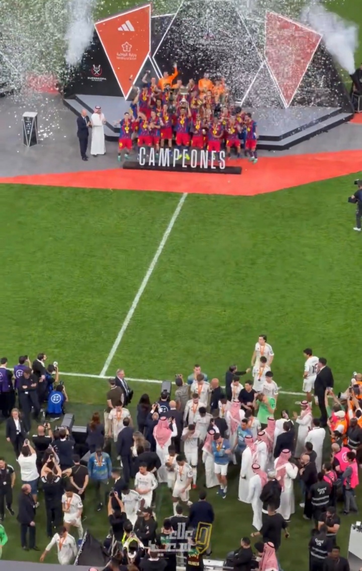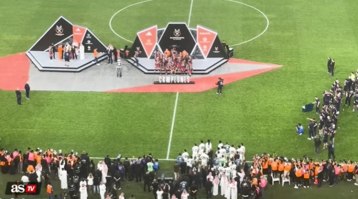 《阿斯报》发布的视频也显示,在巴萨球员捧杯时皇马球员们聚集在边线附近,待巴萨众将捧杯后他们就离开了场地。